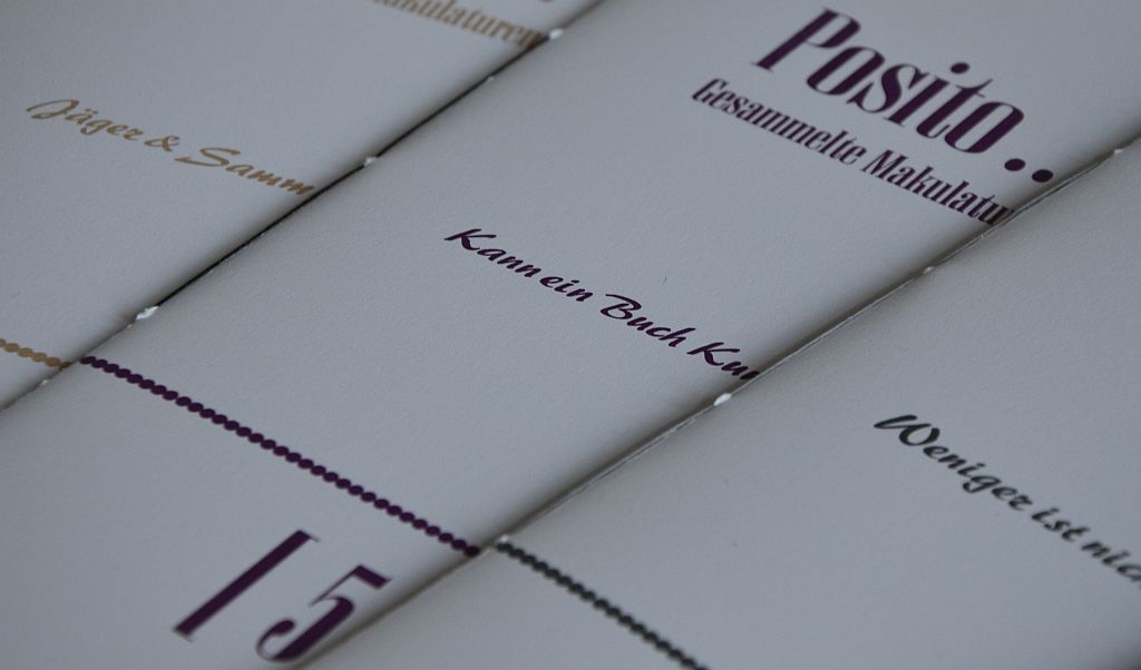 „Posito … Gesammelte Makulaturen“ (Posito … Collected Spoils) is a new series of artist’s books created from prints made back in 2010. Then I was into making the artist’s book about Kurt Tucholsky „Mir fehlt ein Wort“ (I’m in Lack of a Word). During the time of researching, reading and printing I had the idea of writing a number of …